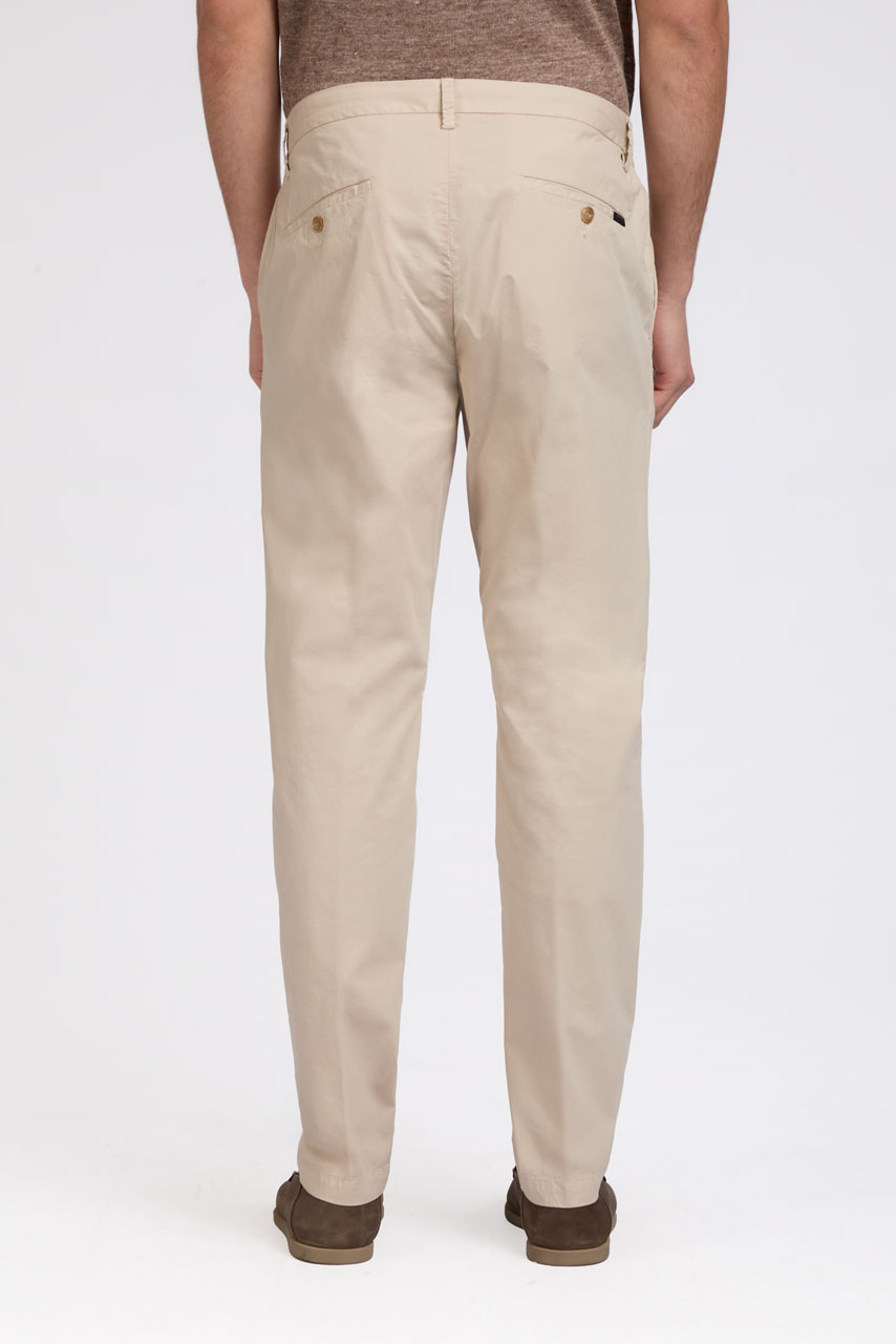 - Trousers crafted from stretch poplin fabric;