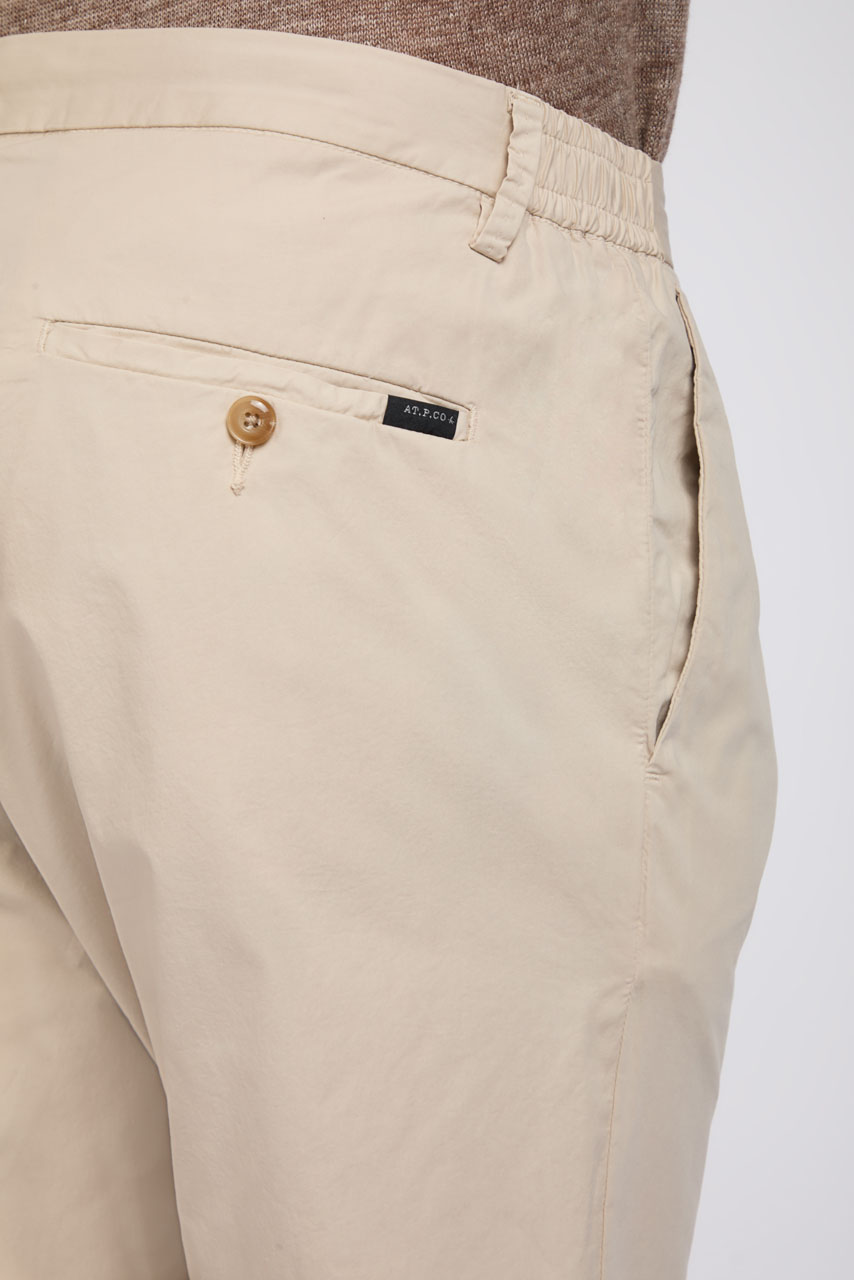 The Berlino trousers, crafted from stretch poplin fabric, combine comfort and practicality thanks to the elasticated waistband and adjustable internal drawstring. The design is completed by side pockets and rear welt pockets.