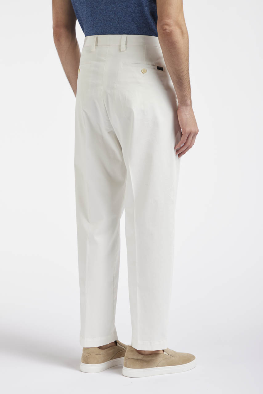• Trousers in stretch cotton gabardine;