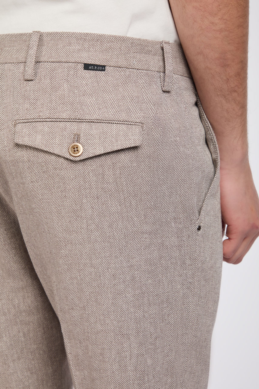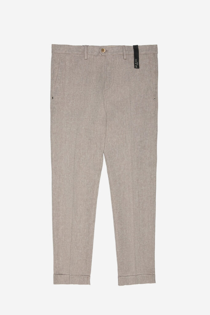 The Sasa model by AT.P.CO is an iconic pair of trousers with a simple and timeless style. Featuring a slim fit and rolled hem, it is made of a linen blend fabric and ensures comfort and freedom of movement. Perfect for a casual yet refined look.