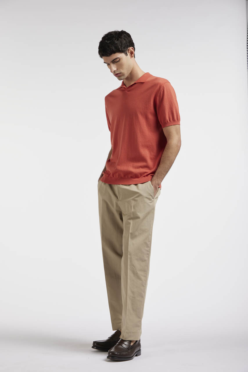 Knitwear interprets the season with light and sophisticated textures, ideal for layering. Warm, earthy tones alternate with deep blues and vibrant turquoises. Clean lines and quality yarns define a relaxed yet refined style.