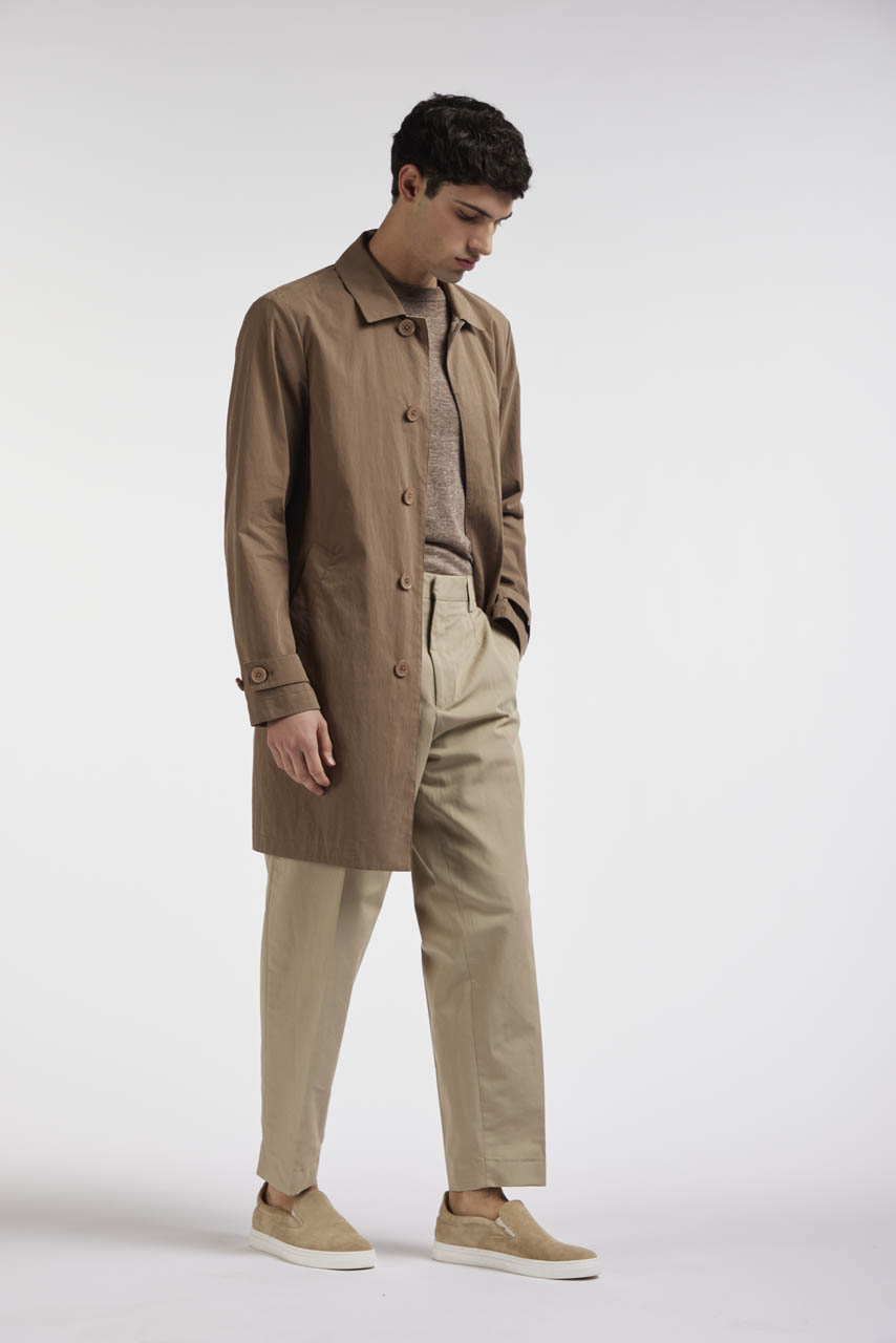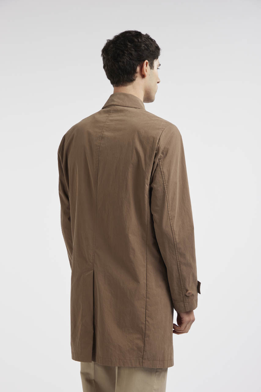 Il car coat Benson è realizzato in tessuto di cotone e nylon, pensato per offrire comfort e protezione. Presenta un colletto classico, maniche con polsino regolabile, una chiusura frontale con bottoni nascosti per un look pulito ed essenziale, due tasche a filetto sui fianchi e uno spacco centrale sul retro che garantisce maggiore libertà di movimento. Un capo pratico e versatile, perfetto per uno stile urbano e raffinato.