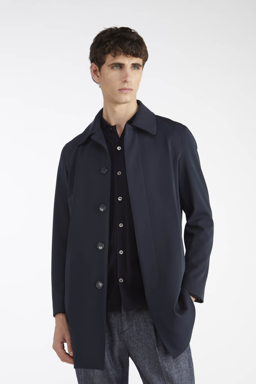 Il car coat Craig, realizzato in tessuto tecnico, presenta una chiusura frontale nascosta per un’estetica minimale, due tasche a filetto sui fianchi e uno spacco centrale sul retro che assicura libertà di movimento e comfort. Un capo versatile, ideale per completare look urbani e raffinati.