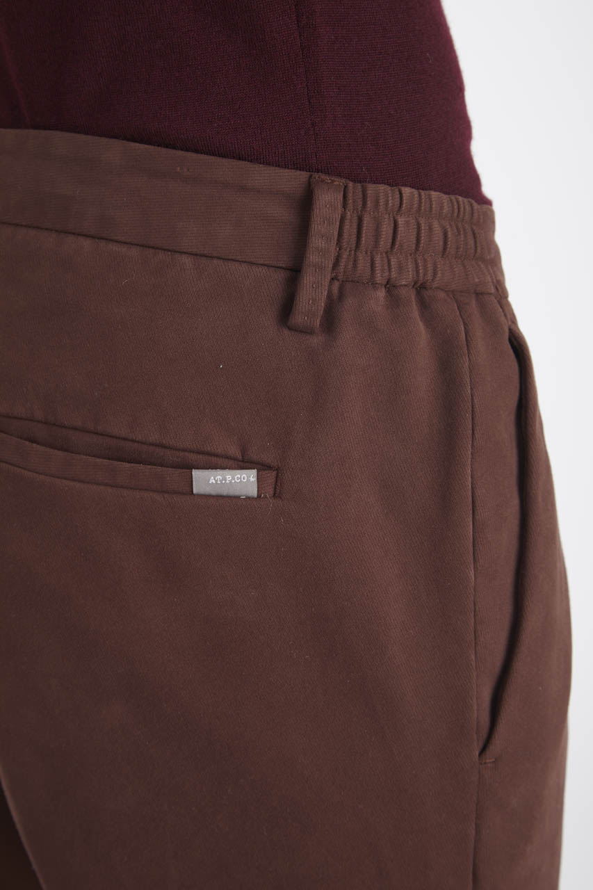- Pantalone realizzato in tricotina di cotone stretch tinta in capo;